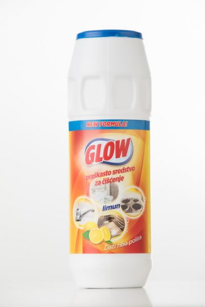 Glow praškasti abraziv služi za čišćenje jako zaprljanih predmeta u domaćinstvu kao što su sudopere, šporeti, keramičke pločice, slavine, predmeti od nerđajućeg čelika kao i u kupatilu-kada,
