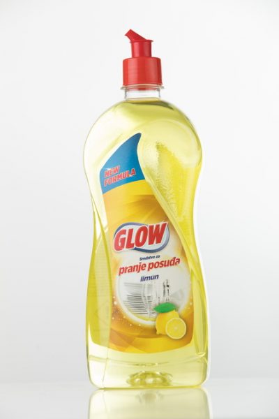 Koncipiran je prema evropskim standardima kvaliteta. Kompozicija površinski aktivnih komponenti osigurava visoku efikasnost kod pranja svih vrsta nečistoća koje se javljaju na posuđu. Glow limun je ekonomičan proizvod, prijatnog mirisa, a oprano posuđe je besprekorno čisto i sjajno.