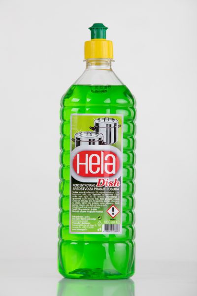 Koncipiran je prema evropskim standardima kvaliteta. Kompozicija površinski aktivnih komponenti osigurava visoku efikasnost kod pranja svih vrsta nečistoća koje se javljaju na posuđu. Proizvod nije škodljiv za normalnu kožu ruku a u procesu pranja ih štiti od gubitka prirodne elastičnosti. Hela Dish je ekonomičan proizvod, prijatnog mirisa, a oprano posuđe je besprekorno čisto i sjajno.